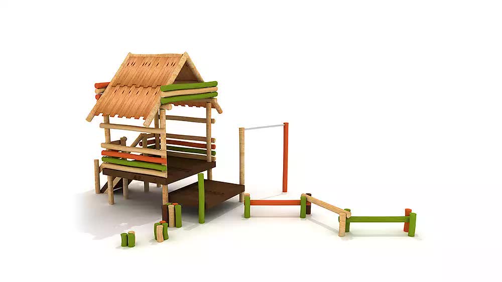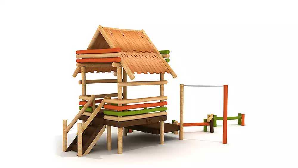 순수 아까시나무를 사용하여 제작된 조합놀이대로