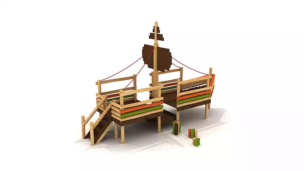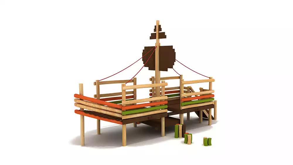 순수 아까시나무를 사용하여 제작된 조합놀이대로