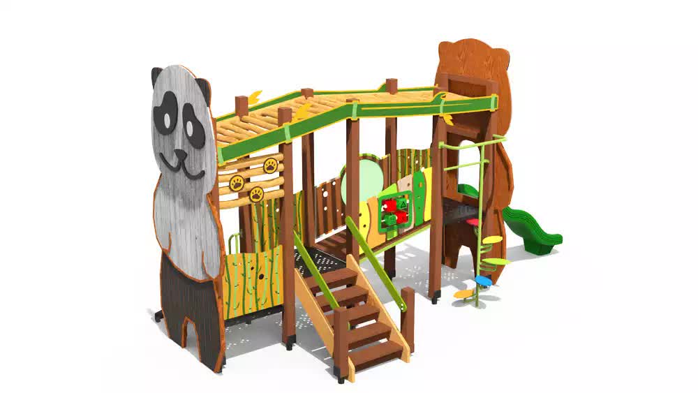 대나무 숲 팬더 곰은 여유로운 시간을 보내고 있습니다. 싱그러운 나무와 푸르른 자연은 아이들의 마음을 치유하는 치료제가 됩니다.